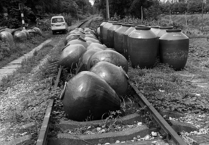 曾经的煤炭运输铁路专线而今成为陶瓷厂的临时堆放场