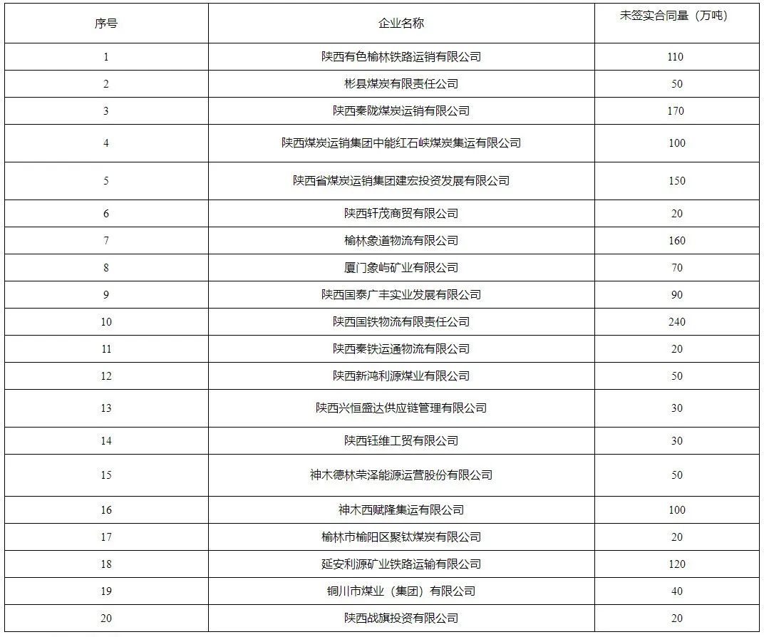 按照国家发展改革委办公厅《关于做好2022年煤炭中长期合同监管工作的通知》要求,每笔合同必须有明确的价格水平或价格机制,其中纳入国家重点监管确认铁路运力的合同中未按照价格机制签实的企业如下: