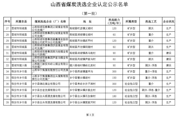 日前,省能源局公布了第一批山西煤炭洗选企业认定名单,涉及7个地市65家企业入选。