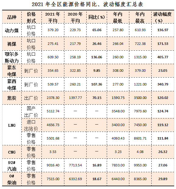 2021年,动力煤价格大起大落,整体价格水平高于上年同期。1-12月,全区动力煤平均坑口价格为379.20元/吨,同比上涨65.06%?