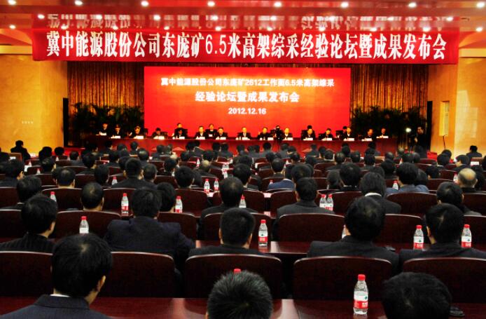 “2012年,咱们矿在极复杂地质条件下,成功应用国内首套6.5米支架,经煤炭行业专家鉴定,6.5米高架综采整体国际先进,部分国际领先。同年10月15日,原煤日产19046吨,刷新建矿以来历史纪录……”