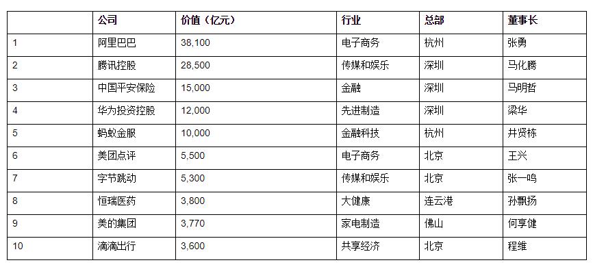 榜单显示,阿里巴巴以3.8万亿市值位列第一,腾讯以2.9万亿市值位列第二,平安保险以1.5万亿市值位列第三。