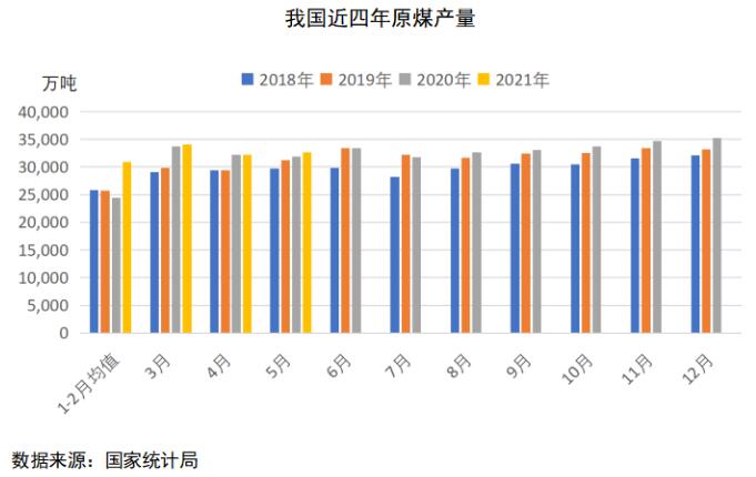 商品的价格是供求关系来决定的,煤炭也逃不出这样的关系。自2020年下半年开始,受安监、环保及“倒查20年”等一系列因素影响,我国煤炭产量始终处于低位。尽管在2020年4季度冬季保供阶段产量有所提升,但2021年3月,产量再次受限。在产业固定资产投资连年受限以及“青山绿水”等因素的影响下,合法产能已经处于满产状态…