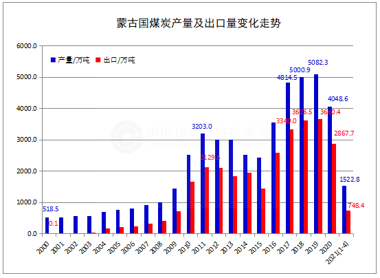据蒙古国国家统计办(National Statistical Office of Mongolia)最新发布的统计数据显示,2021年1-4月,蒙古国煤炭出口累计为748.4万吨,比上年同期增加334.8万吨,同比增长80.95%;比2019年同期减少397.4万吨,下降34.7%。主要影响因素还是由于蒙古国的疫情在4月份又出现了反复,导致中蒙几个陆路口岸严…