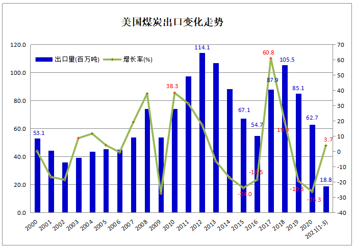 据美国联邦统计局(US Census Bureau)发布的数据显示,2020年,美国煤炭出口6907.1万短吨,比2019年下降26.3%。其中,冶金煤出口约为4200万短吨,同比下降20%;动力煤出口约为2700万短吨,比上年下降34%。2021年一季度,美国煤炭出口量累计为1879万吨,比上年同期增长3.7%。其中,冶金煤出口939万吨,同比下降11.3…