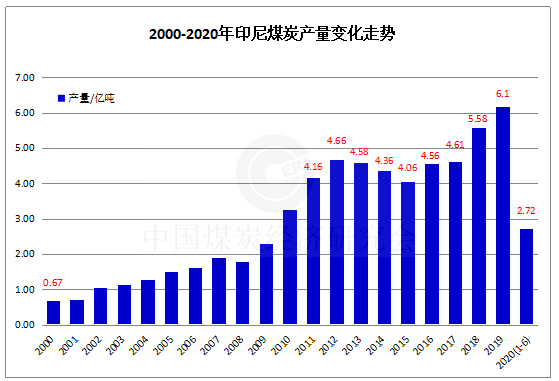 2020年上半年印尼煤炭产量2.72亿吨 同比下降4.6%