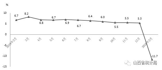 1-2月,山西省规模以上工业增加值同比下降11.7%,比上年同期(6.7%)回落18.4个百分点。?全省规模以上工业增加值累计增速一、分三大门类看,1-2月,全省采矿业增加值同比下降11.7%,制造业下降13.6%,电力、热力、燃气及水生产和供应业下降6.4%。?二、分经济类型看,1-2月,国有控股企业增加值同比下降6.3%;股份制企业下降11.4%,外商…